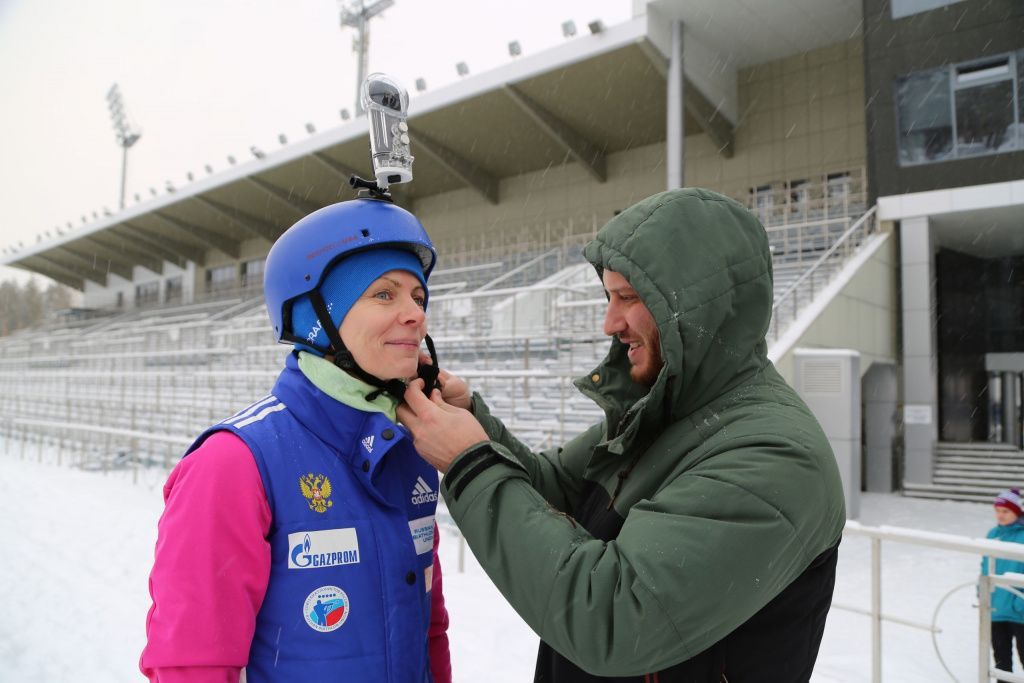Теплая погода позволила произвести съемку лыжни в режиме 360°. Для этого мастер спорта России международного класса по биатлону Анна Халманских прошла на лыжах 2,5 км трассы в шлеме с установленным специальным оборудованием для съемки. В целях стабилизации положения камеры во время движения лыжницы было спроектировано и напечатано на 3D-принтере специальное крепление. Кроме того, разработчики тренажера Дмитрий Башкиров и Георгий Голдобин сняли технику лыжных ходов для разработки подсказок в виртуальном тренажере. Вся видеоинформация после рендеринга будет включена в информационное поле тренажера.